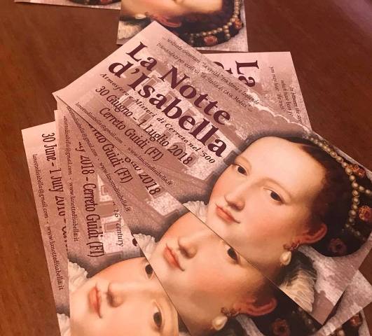Spettacoli di falchi e fuochi, botteghe e mestieri rinascimentali, cibi, musica, tutti gli abitanti del borgo abbigliati con costumi dell’epoca. Cerreto Guidi si trasforma e si accende nella “Notte d’Isabella”, la manifestazione che il 30 giugno e il 1 luglio porterà la vita nel centro storico in pieno ‘500, immersa in epoca rinascimentale.