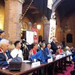 Il drappellone per il Palio del 2 luglio, dedicato alla Madonna di Provenzano, è stato realizzato da Emilio Giannelli. Un senese che ha saputo far convivere, in parallelo, la professione di avvocato con quella di disegnatore e vignettista, una passione, quest’ultima, che lo accompagna da quando era bambino. Conosciuto e apprezzato a livello nazionale per quella sua vena satirica e profondamente toscana, capace di far sorridere e, soprattutto pensare, grazie a pochi, ma sapienti, tratti di china in grado di fare una sintesi dei fatti politici all’attenzione della stampa, è riuscito a regalare a Siena un drappellone che esce dagli schemi dell’arte pittorica più tradizionale. Riconoscibilissimo. Nessuna mediazione. Emilio Giannelli è, giustamente, rimasto l’artista che l’Italia conosce. Con il suo disegno caricaturale ha creato un vero e proprio omaggio ai suoi concittadini.