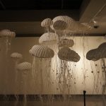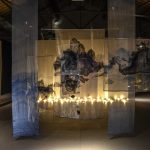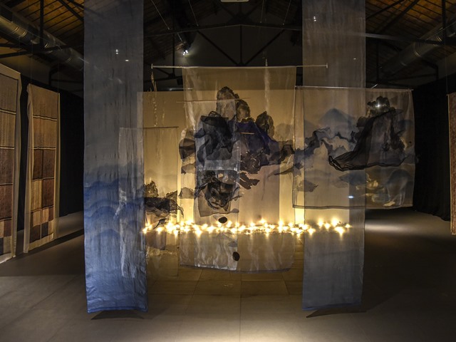 Lana, seta, cotone diversamente manipolati secondo la sensibilità dei vari artisti, si uniscono a materiali di diversa composizione - carta, cera, metallo, bambù - per dare luogo ad oggetti tridimensionali che come delle vere e proprie sculture si ergono negli spazi del Museo oppure calano dall’alto come veli leggeri che fluttuano nello spazio, accanto ad arazzi che sembrano delle vere e proprie opere su tela.