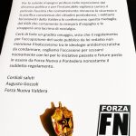 Botta e risposta tra il partito di ultradestra Forza Nuova Valdera e il sindaco di Pontedera Simone Millozzi dopo l'episodio del regolamento per manifestazioni antifasciste sul territorio comunale. Ecco quanto affermato dai primi: "Abbiamo voluto ridicolizzare il bullismo burocratico del sindaco Millozzi e il suo "patentino antifascista" per l'occupazione del suolo pubblico, con un'azione goliardica - dichiara Augusto Gozzoli, segretario provinciale di Forza Nuova -: gli abbiamo spedito una medaglia del KGB accompagnata da una lettera ironica per ricordargli che la sua goffa e isterica repressione non può fermare l'attività di Forza Nuova sul territorio né l'inesorabile tramonto del Partito Democratico. Mentre lui continua imperterrito a parlare di fascismo e antifascismo, compiacendo solo l'ANPI noi continuiamo a parlare di sicurezza e di solidarietà concreta verso i nostri connazionali colpiti dalla crisi e abbandonati dalle istituzioni. Auguriamo al sindaco e ai suoi sodali di godersi i prossimi mesi - conclude Gozzoli - perché tra un anno anche Pontedera seguirà la direzione di Pisa, Siena e Massa".