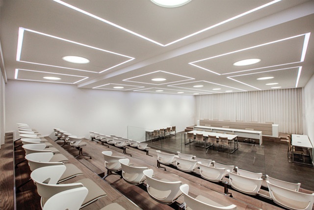 Nel caso di altri eventi i tavoli possono essere rimossi, in tutto o in parte, liberando lo spazio corrispondente per la installazione di 40 posti a sedere, oltre ai 42 posti a sedere delle gradonate. Il bancone delle conferenze, unico arredo fisso, offre postazioni per 6-8 relatori ed è posto sulla pedana rialzata di 30 cm rispetto al pavimento. Alle spalle del bancone è collocato lo schermo per le proiezioni azionabile mediante un telecomando. Da un punto di vista del risparmio energetico le pareti sono state rivestite da un “cappotto” coibentante che, insieme al controsoffitto ribassato, oltre a migliorare l'acustica della sala ha una funzione termoregolatrice.