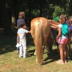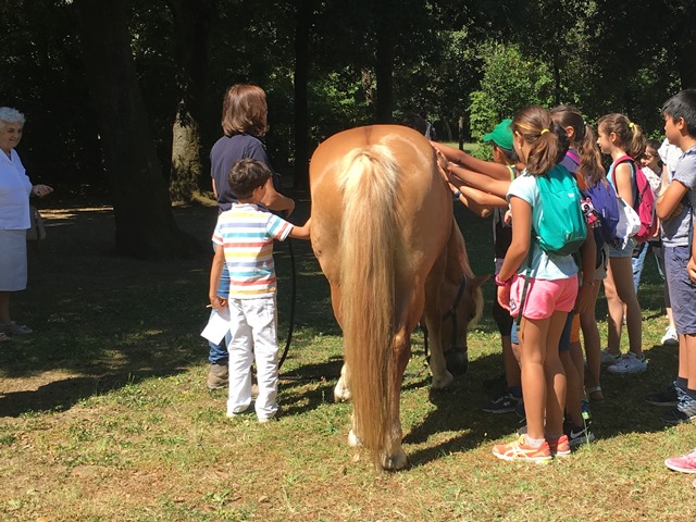 “Viene qui tutti i giorni grazie all'Associazione Cavallo Ambiente di Firenze – spiega Lorenza Camin, che con Fabrizio Paolucci ha curato la mostra in Limonaia comprese le molteplici iniziative dedicate ai bambini. – Solo il primo giorno sono venuti a vedere Bazica 105 bambini dei centri estivi del Comune di Firenze a cui vanno aggiunti quelli che abitano nelle vicinanze del Giardino e i numerosi figli degli stranieri che sono in visita qui”. La cavallina è molto paziente e tranquilla, si fa accarezzare volentieri e mangia contenta le carote che le offrono i piccoli: “E’ abituata – continua Camin – normalmente fa attività di riabilitazione equestre con bambini che hanno disabilità motorie, neurologiche o comportamentali”.