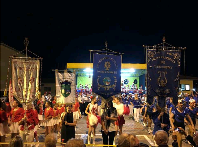 Le esibizioni sono andate avanti per tutta la serata, con le bande che una dopo l'altra hanno riempito il palco e la pista da ballo. Il pubblico numeroso, davanti ai brani e alle coreografie presentate, non ha esitato ad applaudire i musicisti e le majorettes di tutti i gruppi. A chiudere il raduno lo spettacolo della Del Bravo, al quale sono seguite le note di “La Banda di La Scala”, brano suonato e ballato da tutti i partecipanti.