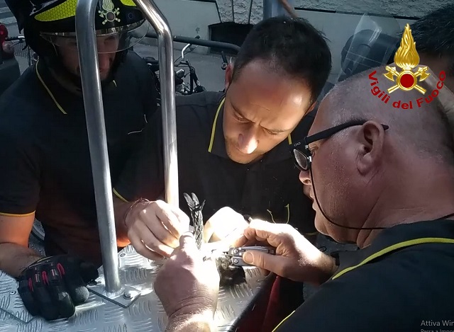 Due rondini intrappolate in una persiana: i vigili del fuoco tentano di salvarle
