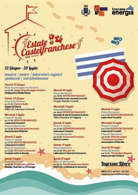 la manifestazione torna con un ricco programma di iniziative dal 2 al 20 luglio. Tante occasioni di intrattenimento, adatte ad ogni età, promosse dalle associazione sportive e culturali del territorio insieme al Comune di Castelfranco di Sotto, propongono un’offerta culturale variegata che accontenta ogni tipo di pubblico.