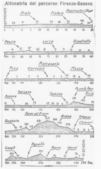 Lungo il percorso il gruppetto verrà accompagnato da vari ciclisti che attenderanno il passaggio dalle maggiori città attraversate: il percorso prevede la partenza da Firenze, con passaggi a Prato, Pistoia, Lucca, Pisa, attraverso la Versilia e le 5 Terre prima del finale verso Sestri, Rapallo e Genova, per un totale di 294 km.