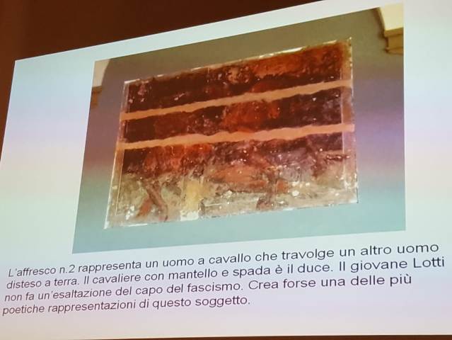 Il luogo - Non è stata una scelta casuale quella di porre il MuMe nell'ex refettorio di San Domenico, nei locali che fino a febbraio ospitavano la biblioteca 'Mario Luzi', spostatasi al piano inferiore. Quel luogo è stato nel Ventennio la Casa del Fascio e ora trovano nuova luce degli affreschi giovanili di Dilvo Lotti datati 1934, la sua prima opera sotto commissione pubblica da parte di Sabatino Novi, preside e capo del fascio locale. L'iniziativa fu inserita all'interno dell'evento nazionale denominato 'Muri agli artisti', rivendicato da Corrado Cagli e Mario Sironi, per riportare anche la tradizione pittorica al centro dopo l'exploit dell'architettura fascista. Le cinque scene di Lotti raccontano scene di vita del periodo fascista che però non vennero apprezzate dalla committenza. Fino al 1944 rimase solo un affresco in vista, poi il crollo del nazismo portò a coprire quelle scene. Sulle pareti esterne del museo trovano spazio le lapidi del plebiscito di annessione di San Miniato al Regno d'Italia, altre sempre legate all'Ottocento e infine le due iscrizioni 'della discordia', che fino a pochi anni fa erano visibili nel municipio. L'una che raccontò nell'immediato dopoguerra come il bombardamento in Duomo fosse sotto responsabilità nazista, l'altro in epoca recente che precisa che l'obice era in realtà di matrice americana. "Non vogliamo ritornare nelle polemiche di cui questa amministrazione è stata bersagliata - commenta il sindaco Vittorio Gabbanini -. Le lapidi stanno bene dove sono, sotto l'ingresso del museo della memoria. Il problema di quel che è successo è la guerra".