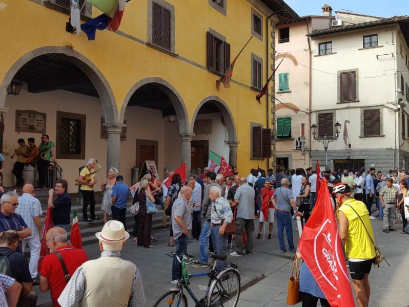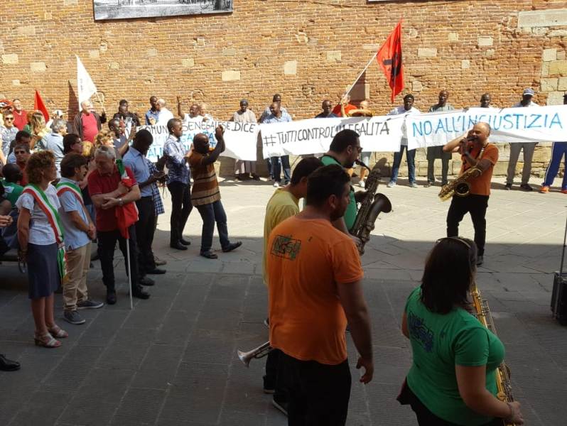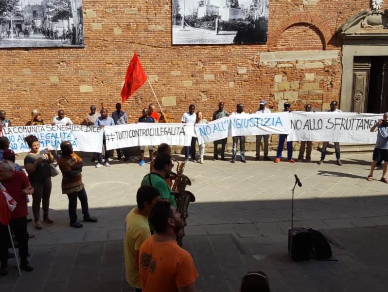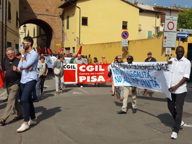 "Non è una questione razziale, questi delinquenti non hanno agito per questi motivi. L'unico noi e loro è tra chi rispetta la legge e chi non la rispetta": con trasporto il sindaco di Castelfranco Gabriele Toti ha parlato al termine della Camminata della Legalità che si è tenuta questa mattina nelle vie del centro storico della città del comprensorio (in fondo al pezzo la diretta live su Facebook a cura di gonews.it, se non vedete il video cliccate qui e qui). Presenti i sindaci Giulia Deidda per Santa Croce e Giovanni Capecchi per Montopoli, gli assessori David Spalletti per San Miniato e Antonella Gorgerino per Fucecchio, varie sigle sindacali ricollegabili alla Cgil Pisa, delegazioni di Potere al Popolo, Liberi e Uguali e Libera, oltre alle associazioni legate al quadro locale di concertazione in rappresentanza della comunità senegalese. Tra i presenti anche i consiglieri regionali Alessandra Nardini e Andrea Pieroni, don Armando Zappolini oltre a un breve saluto del vescovo di San Miniato monsignor Andrea Migliavacca. Per leassociazioni datoriali erano presenti Matteo Giusti della Cna Pisa e Rossella Giannotti per Assa, associazione che riunisce i contoterzisti del settore conciario. Come già ricordato, la manifestazione pacifica parte dall'ennesima aggressione di persone note nel mondo del comprensorio (padre e due figli), titolari di un'azienda, nei confronti di un lavoratore. Non è stata la prima volta, tutti sperano che con questa mobilitazione rimanga l'ultima. Questo episodio è stato la goccia che ha fatto traboccare il vaso, dopo che l'operazione Vello d'Oro della Dda ha scoperto il velo del riciclaggio di fondi della 'ndrangheta nel comprensorio. Tra gli interventi di fronte al municipio di Castelfranco, dopo il primo cittadino hanno parlato don Zappolini, Giusti e Giannotti, un rappresentante della comunità senegalese e Tania Benvenuti della locale Cgil.