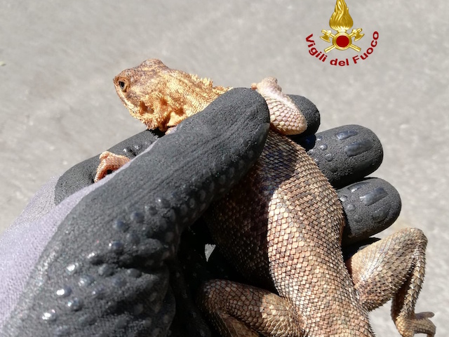 I vigili del fuoco di Montemurlo sono intervenuti nella mattinata in via Pietro Grocco a Prato per il recupero di una iguana di circa 40 cm sulla facciata di un edificio a circa otto metri di altezza. L'animale affidato al Centro di Scenze Naturali di Galceti.