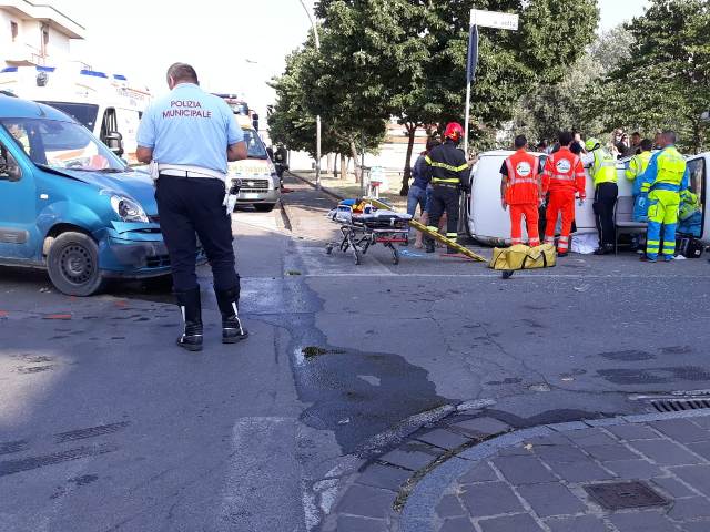 A bordo di un van c'era un uomo mentre nell'altra auto una coppia e l'anziana madre di uno dei coniugi. Uno dei mezzi incidentati in via Volta, una utilitaria, si è ribaltata e le donne sono rimaste incastrate all'interno. Ad avere la peggio l'anziana che avrebbe riportato alcune fratture, tra cui quella del bacino. La donna non è in pericolo di vita. Gli altri feriti, invece, non sarebbero gravi.
