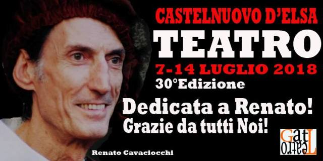 Proprio a Renato Cavaciocchi è dedicato un ricordo struggente di Nicola Pannocchi, presidente del Gat, nel presentare la 30° edizione di questa rassegna, che si svolgerà “sotto le stelle”  a Castelnuovo d’Elsa (piazza Santa Barbara) da Venerdì 6 a sabato 14 luglio (ore 21.30), proponendo ogni sera uno spettacolo diverso.