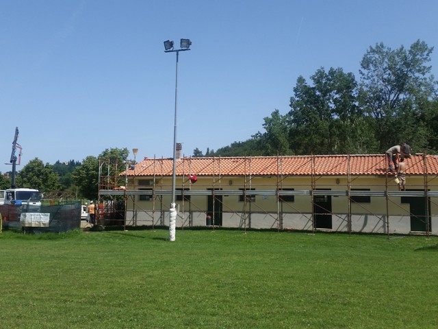 “Abbiamo fatto un consistente intervento alla copertura del tetto degli spogliatoi che ha riguardato la rimozione del manto esistente, fortemente degradato, sostituito con le tegole in cotto – spiega l'assessore ai lavori pubblici Marzia Fattori -. Siamo intervenuti anche sulla muratura esterna con la rimozione dell'intonaco nella parete dietro gli spogliatoi e la sua sostituzione con quello antimuffa. Infine è stata sostituita la gronda con una in acciaio”.
