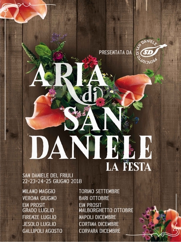 Nel mese di luglio il tour di Aria di San Daniele arriva non solo in Toscana, ma nel weekend del 6 - 8 luglio sarà la volta anche della tappa di Grado, in Friuli Venezia Giulia, in occasione del primo appuntamento del 2018 con la rassegna enogastronomica Ein Prosit. A fine mese, le serate-evento del Consorzio del Prosciutto di San Daniele coinvolgeranno anche alcuni dei locali della città marittima di Jesolo.