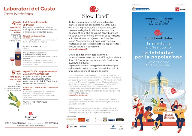 Saranno tre giorni ricchi di appuntamenti a Montecatini Terme per il IX Congresso nazionale Slow Food.