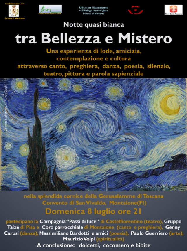 Domenica 8 luglio 2018 alle ore 21, nella suggestiva cornice della Gerusalemme di San Vivaldo, si terrà la 'NOTTE BIANCA TRA BELLEZZA E MISTERO'