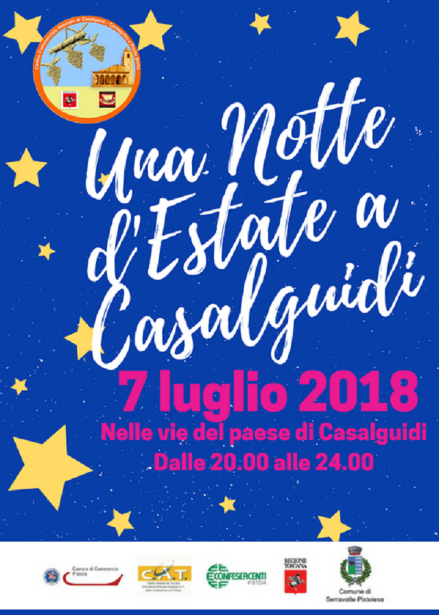 Sabato 7 luglio va in scena “Una notte d’estate a Casalguidi”, evento organizzato dal Centro Commerciale diCasalguidi, Cantagrillo e Ponte Stella pervivere una serata estiva all’insegna dello shopping, del divertimento e del buon cibo. “Una notte d’estate a Casalguidi” si svolgerà in varie vie del paese dalle 20 in poi. Tutti i negozi saranno aperti per lo shopping serale a prezzi vantaggiosi, visto che sabato è la data d’inizio dei saldi.