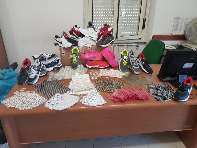 La guardia di finanza di Massa Carrara ha sequestrato 11.000 prodotti contraffatti tra scarpe, borse e vestiario, durante un'attività di contrasto ai traffici illeciti a Marina di Massa. La merce avrebbe un valore di 100mila euro. I prodotti erano di due cittadini extracomunitari. In tutto sono stati trovati 200 paia di scarpe di una famosa casa di moda che i due stavano vendendo per strada e altri 11 mila capi di abbigliamento, oltre a borse e 1.000 euro in contanti.