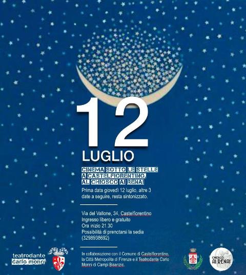 Cinema sotto le stelle, gratuito e al fresco in collina. Cosa chiedere di meglio? Il sogno di una sera di piena estate prende corpo da giovedì sera (12 luglio) al Chiosco ai Renai, attraverso un progetto innovativo promosso dal Teatrodante “Carlo Monni” di Campi Bisenzio in collaborazione con il Comune di Castelfiorentino, finanziato dalla Città Metropolitana di Firenze e dal proprietario del Chiosco, Nico Pente.