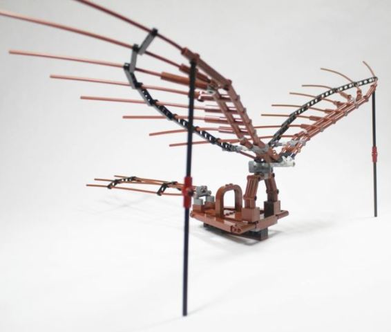 Il modello sarà perfettamente funzionante grazie ad alcuni pezzi della linea Lego Technic collegati a un ingranaggio che permette l'alzamento o abbassamento dell'intera "struttura alare". Per l’operazione, dal titolo Leonardo da Vinci's Ornithopter, Sadovich userà 426 mattoncini Lego ufficiali e l’elemento principale di questo incredibile set sarà la presenza di un cavalletto dotato di una manovella che serve non solo per sbattere le ali, ma anche per far girare un piccolo planetario posto al centro della struttura. "Gli ingranaggi sul lato destro eseguono la rotazione del Sole - spiega il costruttore - mentre quelli a sinistra eseguono il movimento del pianeta Terra”. Un dettaglio "nascosto" sarà il cielo notturno posto sopra il planetario, dove è disegnata anche la costellazione del Grande Carro.
