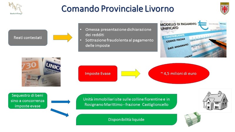 A sequestro dunque ulteriori 2 unità immobiliari (ubicate a Rosignano Marittimo – frazione Castiglioncello) e disponibilità liquide..