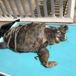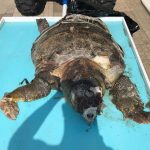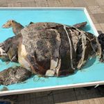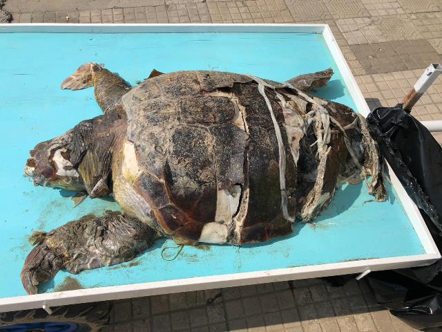 Da una prima analisi della tartaruga, appare possibile escludere l’attività di pesca come causa della sua morte, in quanto non si rinvenivano maglie di reti da pesca o fili di nylon con ami attaccati alla carcassa.