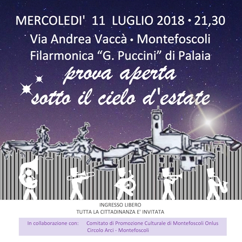 In preparazione del tradizionale concerto estivo palaiese, e dopo il successo di pubblico dello scorso anno, anche per quest’anno la locale Filarmonica Giacomo Puccini ha avviato un percorso musicale attraverso una serie di prove all'aperto in alcune delle frazioni del comune.