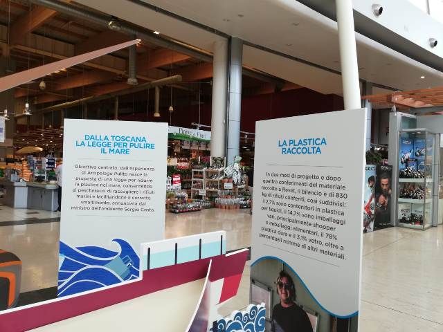 Il progetto Arcipelago Pulito si fa mostra con un percorso itinerante fra punti vendita, che girerà tappa dopo tappa vari supermercati Coop.fi per divulgare i primi risultati della sperimentazione di raccolta delle plastiche in mare, nata grazie ad un protocollo d'intesa siglato tra laRegione Toscana, il Ministero dell'ambiente, Unicoop Firenze, Legambiente, la Guardia Costiera della Toscana, l'Autorità di sistema portuale del Mar Tirreno Settentrionale, la società Labromare concessionaria per la gestione dei rifiuti nel porto di Livorno, l'azienda di raccolta e riciclo dei rifiuti Revet e la cooperativa di logistica integrata Cft.