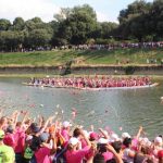 3mila gerbere rosa gettate in Arno da tutti i partecipanti e da 18 Dragon Boat in ricordo delle compagne scomparse accompagnati dalla colonna sonoro da de Il Gladiatore Now We Are Free.