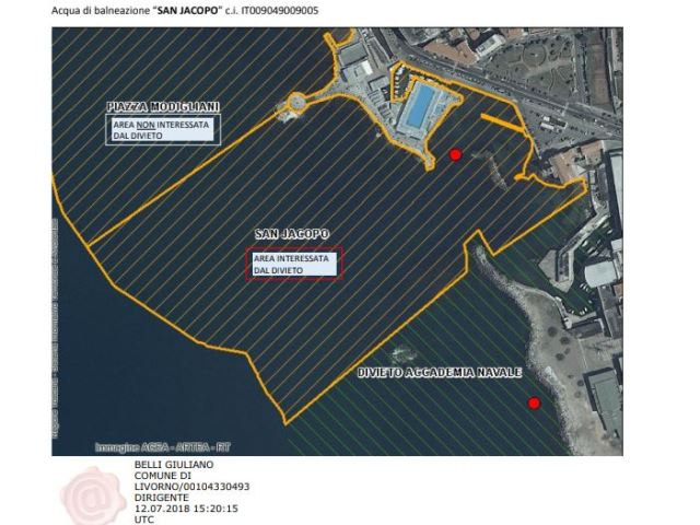 È in vigore da oggi, giovedì 12 luglio, il divieto temporaneo di balneazione in zona San Jacopo – Acquaviva, all’interno dell’area identificata in cartografia come "San Jacopo IT009049009005".