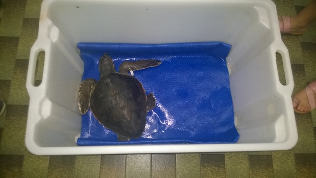 La tartaruga è stata tenuta al caldo e reidratata e, poco alla volta, i parametri vitali sono migliorati. Dopo quattro giorni è stata sistemata in una vasca riscaldata con poca acqua dove ha mostrato anche interesse per il cibo e ha cominciato a nutrirsi in maniera autonoma.