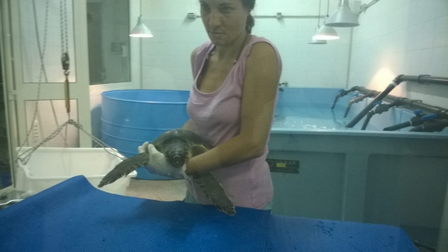La tartaruga è stata quindi trasferita al Centro Tartanet di Talamone, gestito dal Parco Regionale della Maremma dove la veterinaria Chiara Caruso ha constatato condizioni decisamente critiche: pochissima reazione agli stimoli e temperatura corporea molto bassa, per questo motivo è stata subito intrapresa una terapia volta al superamento dello shock.