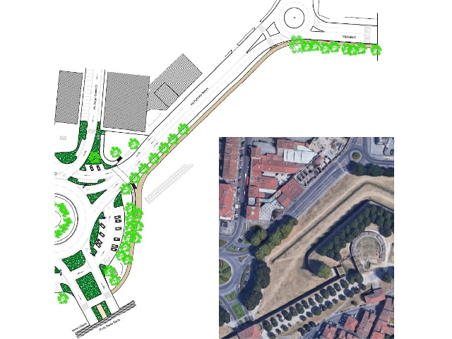 Il nuovo tracciato che parte dalla porta nord della città, lungo i viali Batoni e Marti, ripercorrerà l’attuale percorso sterrato ed avrà una larghezza massima di 2,5 metri per uno sviluppo lineare di circa 280 metri. Più in dettaglio, le lavorazioni prevedono la scarifica minuta del primo strato superficiale dell’attuale percorso sterrato, l’esecuzione del percorso vero e proprio in asfalto natura, nonché la realizzazione di varie opere accessorie e di finitura come la realizzazione di scivoli in prossimità degli attraversamenti pedonali, la posa in opera di arredi e segnaletica urbana, e la piantumazione di nuove alberature.