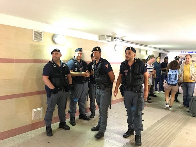 All’interno della Stazione Centrale personale, personale addetto alla controlleria di Protezione Aziendale di Trenitalia ed RFI, insieme a personale della Polizia Ferroviaria di Pisa hanno controllato, per tutta la mattina, il regolare possesso dei titoli di viaggio dei passeggeri di nove treni diretti verso le località balneari con a bordo circa duemila persone, con una operazione di filtraggio e di identificazione resa possibile dall’ausilio di personale della Polizia di stato, dell’Arma dei Carabinieri territoriale e soprattutto dei reparti di rinforzo del Reparto Mobile di Firenze e di un contingente del Battaglione “Toscana” dei Carabinieri provenienti da Firenze.