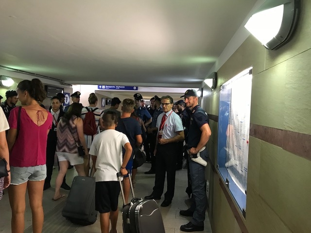 All’interno della Stazione Centrale personale, personale addetto alla controlleria di Protezione Aziendale di Trenitalia ed RFI, insieme a personale della Polizia Ferroviaria di Pisa hanno controllato, per tutta la mattina, il regolare possesso dei titoli di viaggio dei passeggeri di nove treni diretti verso le località balneari con a bordo circa duemila persone, con una operazione di filtraggio e di identificazione resa possibile dall’ausilio di personale della Polizia di stato, dell’Arma dei Carabinieri territoriale e soprattutto dei reparti di rinforzo del Reparto Mobile di Firenze e di un contingente del Battaglione “Toscana” dei Carabinieri provenienti da Firenze.