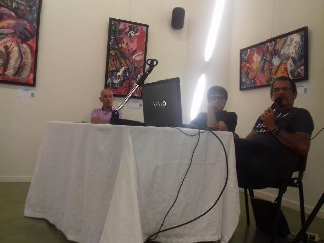 "È sempre difficile parlare di opere d'arte - ha spiegato Ballantini - perché se avessi potuto comunicare con le parole non avrei fatto un'opera d'arte. Dipingo da 35 anni improvvisando sulla tela, non ho progetti specifici. L'arte deve rimanere una cosa inspiegabile, non può essere calcolata, altrimenti diventa una cosa intenzionale, culturale, non è questo che mi interesa. Sono affascinato dall'essere umano, dal volto e non a caso nella mia altra attività vesto i panni degli altri. Proprio questo essere un altro porta questo sconvolgimento interno che ha bisogno di uno sfogo, dipingere è una necessità per me".