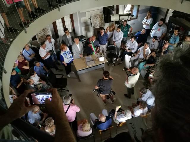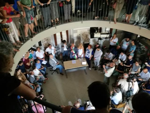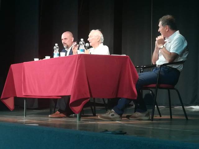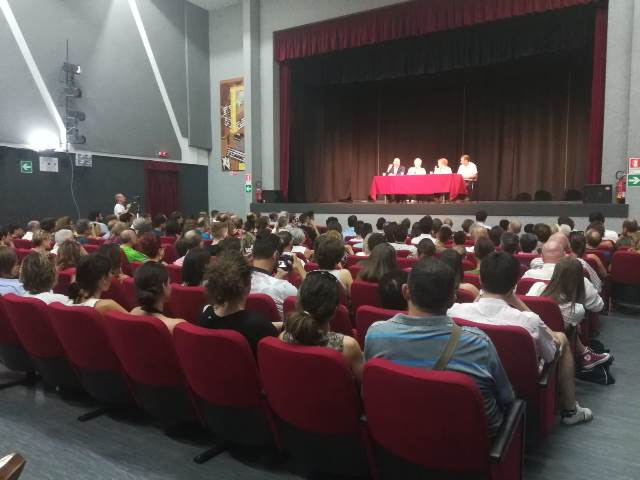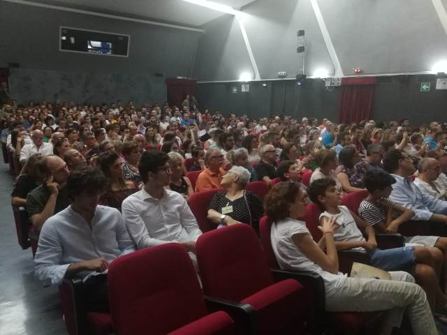 Con lui al tavolo anche il sindaco Paolo Masetti nella conferenza del pomeriggio. Molte persone sono venute senza prenotazione e non sono potute entrare. C'erano circa 270 posti nel Cinema Mignon.
