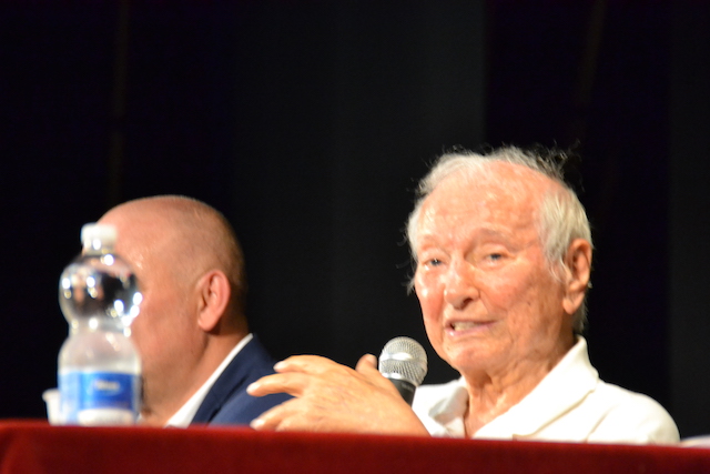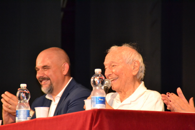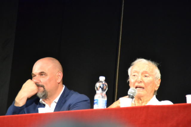 Con lui al tavolo anche il sindaco Paolo Masetti nella conferenza del pomeriggio. Molte persone sono venute senza prenotazione e non sono potute entrare. C'erano circa 270 posti nel Cinema Mignon.