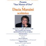 L’associazione culturale ‘Arco di Castruccio’ ha assegnato il Premio ‘San Matteo D’Oro’ alla scrittrice Dacia Maraini. La premiazione si terrà nella sala consiliare del Comune di Montopoli in Val D’Arno il 15 luglio alle 18 presso il giardino del Museo Civico Palazzo Guicciardini a Montopoli in Val d’Arno.