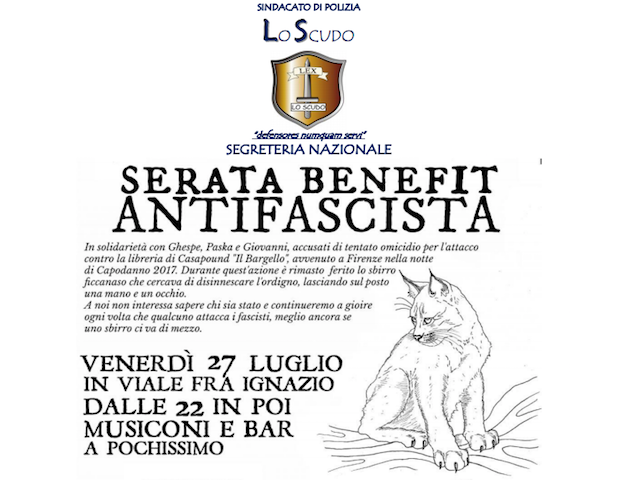 Normalmente non commentiamo i tanti volantini, spesso farneticanti, affissi abusivamente sulle pareti delle città italiane da parte di centri sociali dell'area anarchica. Li consideriamo per quel che sono e che, sostanzialmente, svolgono la loro attività senza rendersi conto che altro non sono anch'essi che tasselli di quella grande messinscena generale, in cui tutti fanno la loro "parte", recitando un ruolo ben preciso, al quale non possono sfuggire. Questa volta, però, non possiamo e non vogliamo esimerci dall'evidenziare (dandogli pubblicità, ne siamo consapevoli, ma alcuni effetti collaterali sono inevitabili ...) cosa esprime questo volantino, relativo a una "serata di beneficenza" che si terrà a Cagliari. Non per le solite frasi contro la polizia, alle quali siamo abituati e delle quali, di norma, sorridiamo per la loro trita stupidità ma perché qui si fa un riferimento ben preciso al collega Mario Vece, nostro artificiere di Firenze, che nel tentativo di disinnescare un ordigno esplosivo, nello scoppio che ne è conseguito ha perduto una mano e un occhio. Questa volta, quindi, si é travalicato il limite della sterile stupidità ma si inneggia, anzi, si esalta e si auspica la violenza contro i poliziotti e quindi contro lo Stato. Quella "serata", quindi, non solo chiediamo sia proibita ma che gli organizzatori siano denunciati. Chi vi parteciperà, se malauguratamente dovesse svolgersi comunque, dovrebbe vergognarsi.
