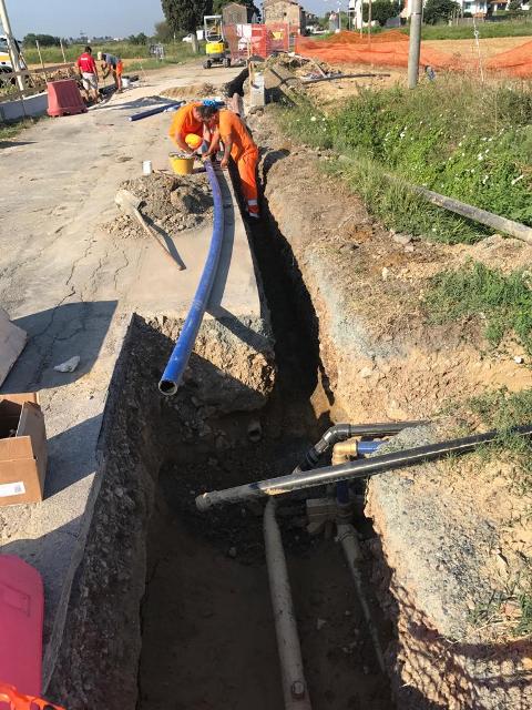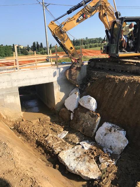 Oltre ai lavori di realizzazione del piccolo ponte e di sostegno delle sponde, in questi giorni è in corso l’intervento per la sistemazione e l’attraversamento del fosso da parte delle condutture del gas metano e dei cavi dell’energia elettrica.