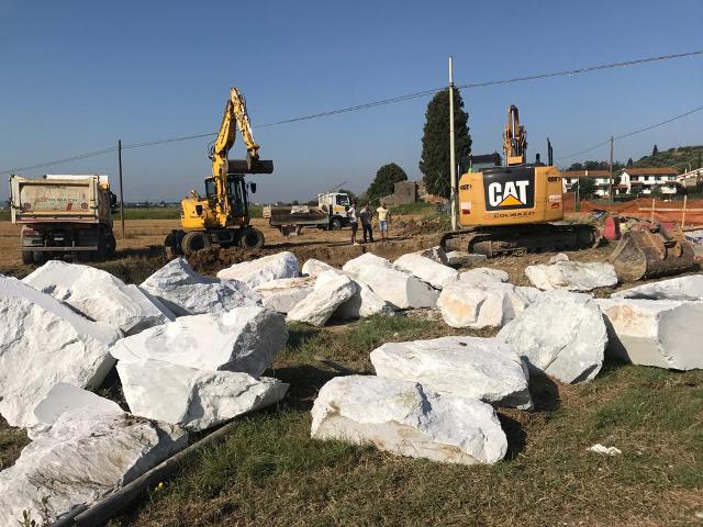 In via Poggio Osanna, nei pressi della frazione di Torre, sono arrivati i massi che comporranno la “scogliera” lungo le sponde del Fosso Cioni. Le grosse pietre, arrivate dalla provincia di Massa Carrara, serviranno per mettere in sicurezza gli argini del fosso dall’erosione delle acque nei pressi del nuovo ponte in corso di realizzazione.