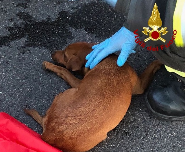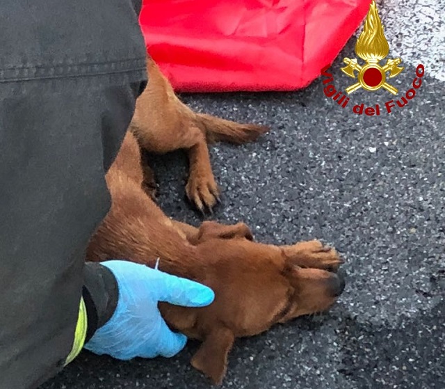 Il cane è stato estratto e dopo una steccatura provvisoria ad una zampa, è stato affidato alle cure di un veterinario giunto sul posto.