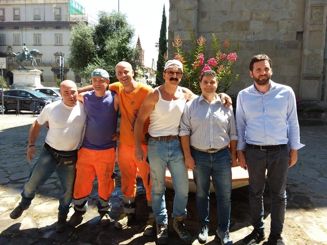 Nella foto di gruppo da destra il sindaco Alessandro Tomasi, l’assessore ai lavori pubblici Alessio Bartolomei e il personale del cantiere comunale e i giardinieri del Comune.