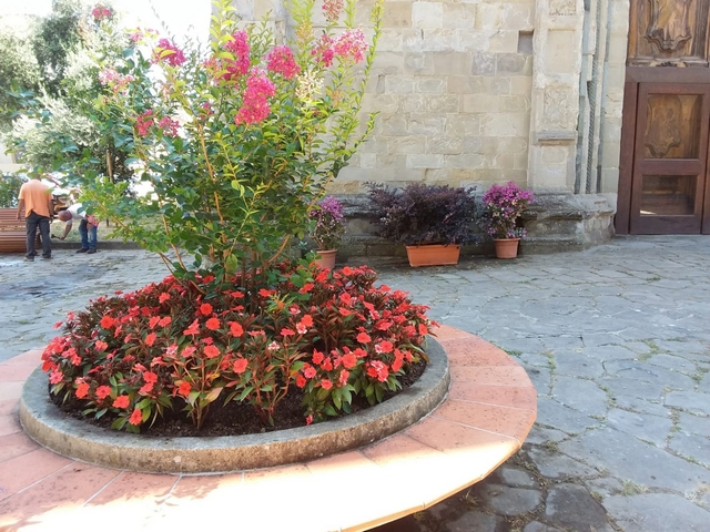 Adesso si sono conclusi i lavori di sistemazione di fiori e piante e di una fioriera completata da una seduta circolare in cotto, oltre a panchine in questo spazio nei pressi della chiesa di San Domenico.