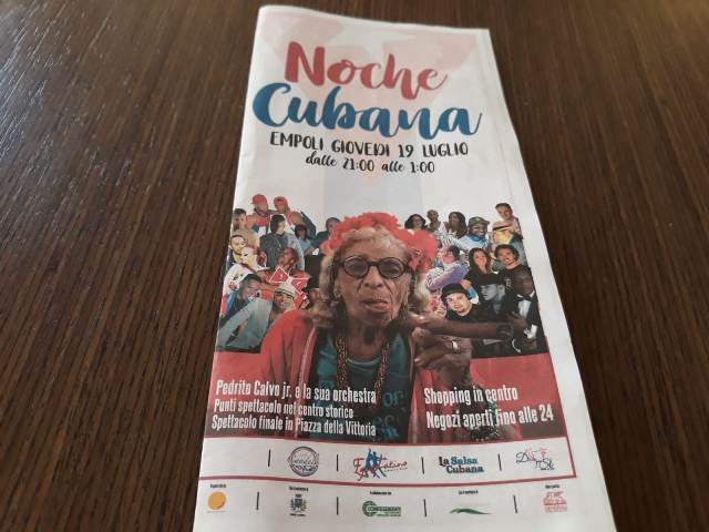 Passeggiare per il centro di Empoli o per le strade di L'Avana non è mai stato così simile. Nel Giro empolese giovedì 19 luglio dalle 21 arriva la prima Noche Cubana: prodotti tipici gadget latini, ma soprattutto spettacoli e concerti live racchiusi tra piazza della Vittoria e piazza Farinata Degli Uberti. Il tutto con i negozi aperti, dato che rientra nel 'Luglio Empolese', e con tanta musica e allegria in centro.