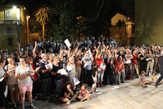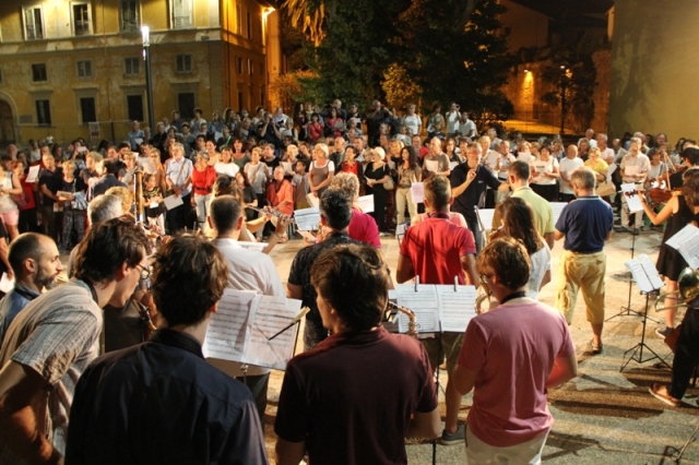 La performance sarà insieme un atto di partecipazione, di memoria storica e di riconoscimento per quelle persone che hanno dato la vita per noi, per quello che siamo adesso. Una memoria da difendere con le armi della musica e del canto, un modo etico di dire no alla guerra e ai totalitarismi, ma anche al terrorismo e ai fanatismi. Non importa essere professionisti, si tratta di fare testimonianza e di esserci: per resistere ed esistere. Un semicerchio intorno al monumento; saranno distribuiti i testi e gli spartiti e sotto la direzione di Sandro Tani e Simone Faraoni tutti insieme, semplicemente, suoneremo e canteremo brani popolari dell’epoca, ma non solo, per finire poi con il tradizionale Bella Ciao.