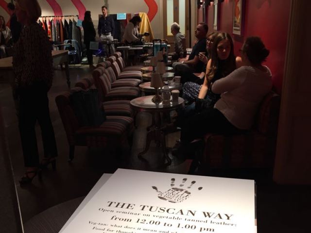 La prima tappa di The Tuscan Way è stata a Lineapelle London, nella splendida cornice del Ham Yard Hotel nella giornata di martedì 10 luglio. Un seminario che ha destato notevole interesse tra i presenti accorsi in gran numero ad assistere all’esordio del nuovo format. Più di 100 persone hanno seguito con grande attenzione la presentazione tenuta dalla Dr.ssa Diane Ellen Becker, consulente d’immagine nel settore della moda e del design, sulla maniera toscana di produrre la pelle al vegetale all’interno delle concerie associate al Consorzio Vera Pelle Italiana Conciata al Vegetale. Un evento il cui obiettivo, oltre a far conoscere un prodotto di qualità, è stato quello di raccontare la storia di questa pelle e comunicarne i valori e la cultura del luogo in cui viene prodotto, appunto la Toscana.