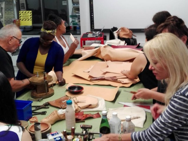 La trasferta a New York è stata infine l’occasione per organizzare un summer workshop al Fashion Institute of Technology, Martedì 17 Luglio. Per l’intero pomeriggio si è tenuto un laboratorio pratico per sperimentare la pelle conciata al vegetale e creare piccoli oggetti alla presenza del mastro artigiano Giorgio Testi.
