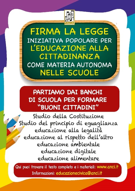 La prima firma a Poggio a Caiano è stata del sindaco: Francesco Puggelli ha vergato il suo nome e cognome nel registro che accompagna la legge di iniziativa popolare promossa dall’Anci, l’associazione che riunisce i Comuni italiani, per l’introduzione nei programmi scolastici di un’ora settimanale di educazione alla cittadinanza, come disciplina autonoma con propria valutazione, nei curricula e nei piani di studio.