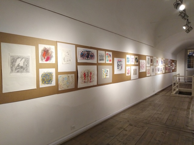 Oltre 15 metri di pannelli di cartone corrono lungo un muro della galleria. Un affastellamento di disegni dal 1965 al 2009 che portano all'immaginazione un grande tavolo da lavoro sul quale l'artista ha voluto esporre i suoi disegni. La semplicità del materiale di supporto – o di appoggio – diminuisce la distanza tra arte – troppe volte considerata elitaria e di palazzo – e fruitore. Cornici, vetri, passpartout ed altri orpelli scansano le depravazioni del pur necessario mercato dell'arte cosicché lo spettatore possa godere del dialogo, a faccia a faccia, con l'artista che gli si pone intimo e privo di ogni difesa oggettiva.